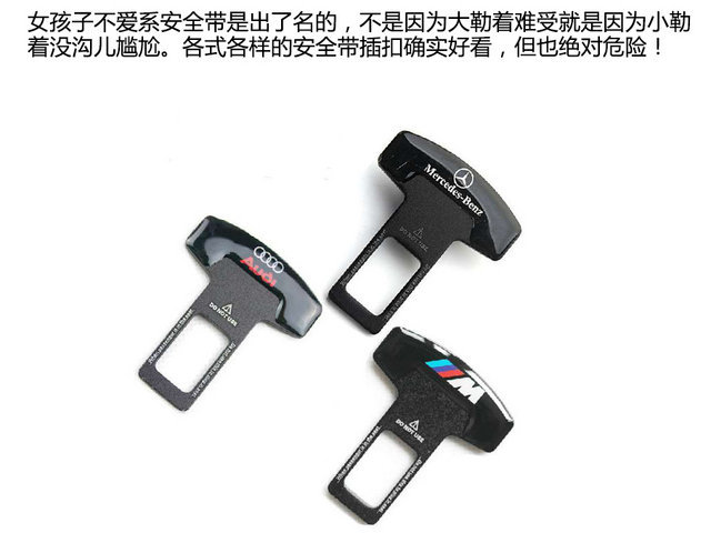 買了車后,特別是一些女孩子喜歡給自己的愛車裝飾裝飾。特別會在中控臺上擺了好多小東西,還會穿著高跟鞋開車等等這樣錯誤的用車習慣。今天榮致汽車焊接件接下去2天會盤點車內(nèi)好看不好用的裝飾和一些不好習慣: 1.安全帶插扣 對于那些就不想系安全帶的人,安全帶插扣自然就誕生了,去看看自己身邊朋友的車準保有一輛車上有這玩意,把它一插,警報不響,不用被安全帶勒著確實舒服,但你可知,汽車上的安全裝備發(fā)展到現(xiàn)在,什么各個部位的氣囊,主動剎車,自適應巡航都不如一根安全帶作用重要。